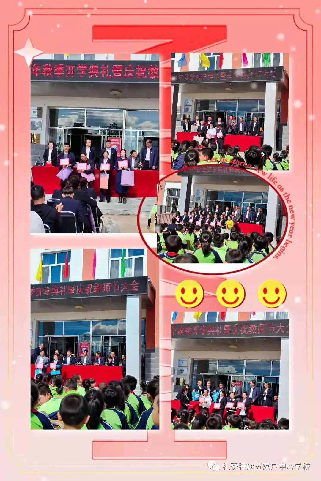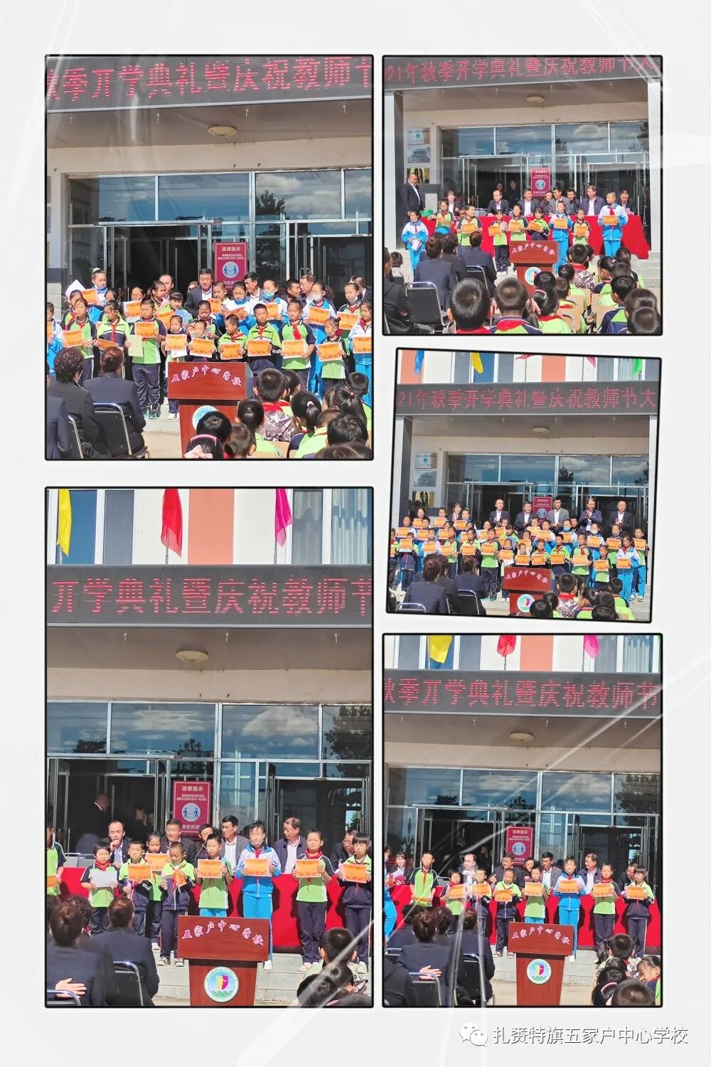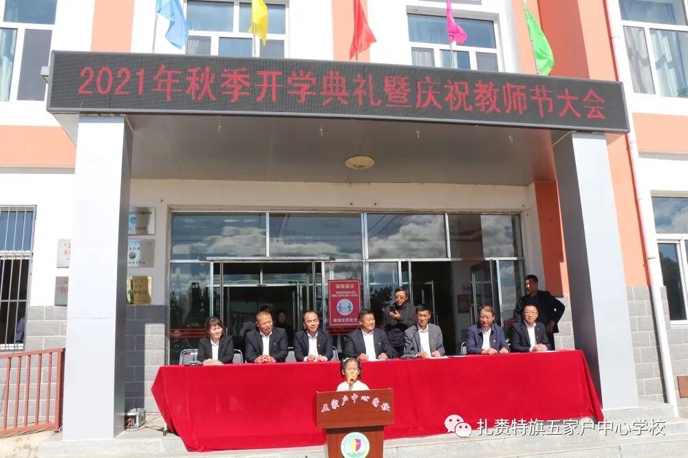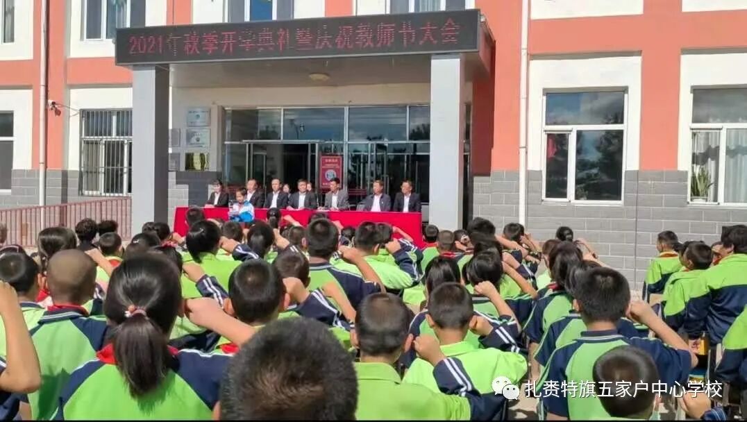 长空鸣雁秋时至,桃李春风又一年。党的百年华诞之际,老师们迎来了第37个教师节。9月10日上午,五家户中心学校全体师生喜气洋洋,抖擞精神,在教学楼前隆重举行2021年秋季开学典礼暨庆教师节大会。